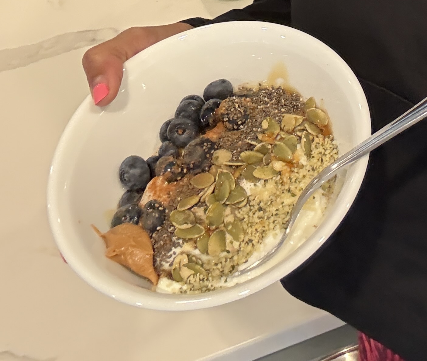 This breakfast contains 20g of protein, and 7g of fiber to start your day. Delicious, filling, and great for your body!